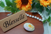 外周には小粒パールをぐるりと丁寧に縫い留め、