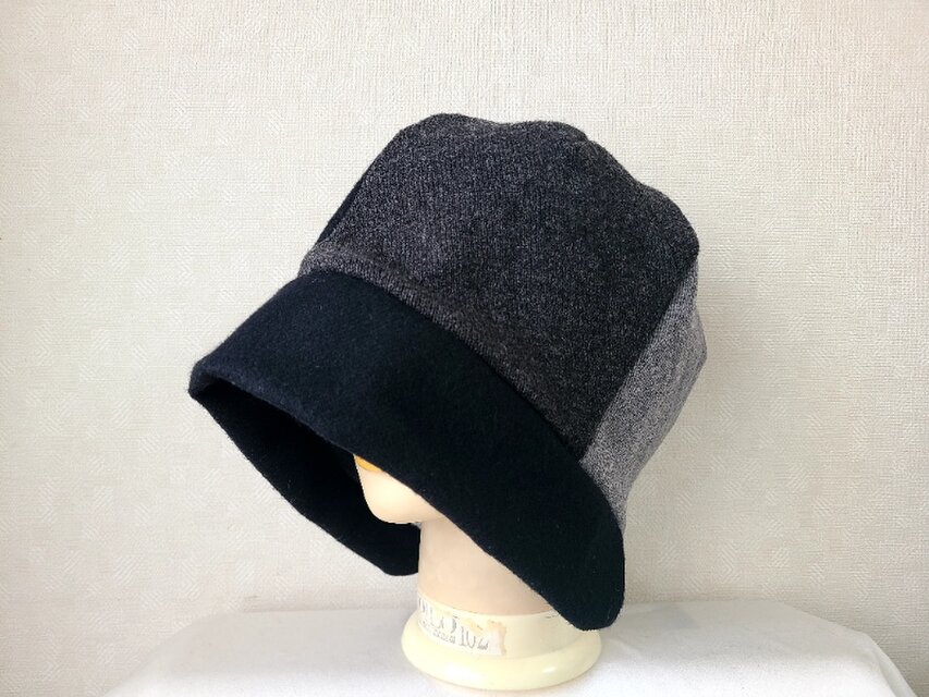 魅せる帽子☆ふんわり軽い♪ウールのグラデーションクロッシュ~ブラック&グレー2