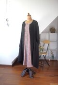 着物リメイクの作品を初めて購入しました。留袖の柄や刺繍は重厚感があり綺麗ですがワンピースに仕立てると重たく感じるのではと心配していました。作品が届き手にした瞬間とても軽く驚きました。70代後半で着物を着ることが辛くなってしまった母も、これなら楽に着られると喜んでくれました。作品サイズは詳細に掲載していらしたので安心でしたが、総重量を掲載して頂くともっと購入者も増えるかとお節介ながらの感想です。