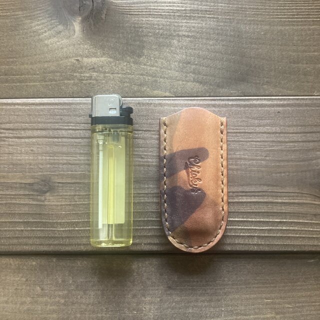 標準サイズの100円ライターを入れたらちょうど良いサイズで作ってます。(*対応しているライターは写真を参考にしてください。)