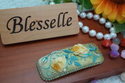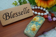 ふんわりと立体的に咲く二輪のイエロー薔薇を丁寧に刺繍しました。