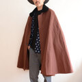 肩から自然に流れるケープラインは、動きに合わせて表情を変え、羽織るだけでシルエットが整う洗練されたデザイン。