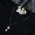 黒ベースの装いに映える乳白色の柔らかなパール