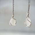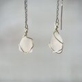 《スターリングシルバー/Silver925》小さなホワイトシーグラスのロングピアス