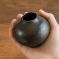 |黒泥土丸花入|一輪挿し ミニ花入 ミニミニ花瓶 ミニミニ花入 花入れ 小壺 フラワーベース 陶器 和陶器 黒泥土丸花入