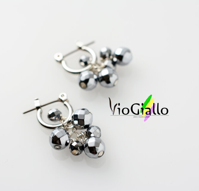 ヘマタイト(ラウンドカット)の粒々ピアス