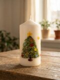 キャンドルに、クマさんの絵を描きました。ニューヨークのTシャツに赤い帽子を被っています。