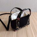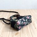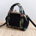 トートバッグ風 がま口ショルダーバッグ ポシェット 21cm口金 薔薇柄 ブラック 539