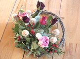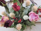 今回も素敵な作品をありがとうございます。大人っぽくて上品な色合いに一目惚れしました! 以前お迎えした薔薇のリースもとても素敵で色褪せるまで飾り続けていたのですが、今回のリースも日に何度も眺めてしまうほど素敵でうっとりしてしまいます。定位置の寝室に飾っています☆