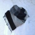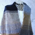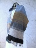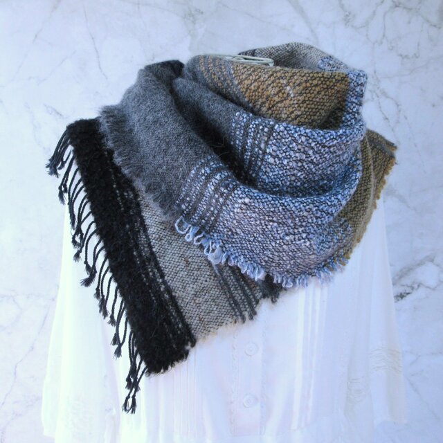 紺色とグレーの部分はカシミヤ。ベージュの部分はカシミヤと暖かなメリノウール、そしてモヘヤも加えて織っています。ふわふわと柔らかな肌触りに仕上がりました。