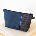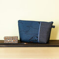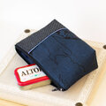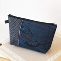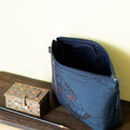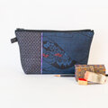 B-102大島紬切り替えポーチ/男大島×青紫ライン青色大島