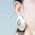 ピアスの芯・キャッチ・イヤリング金具はすべて革の内側に埋め込み、
