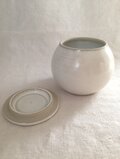 柔らかな雰囲気の乳白色の釉薬を使用した蓋物です。