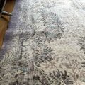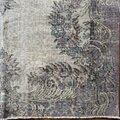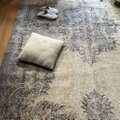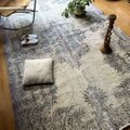 ラベンダー系のラグはもともと希少ですが、ここまで落ち着いた大人のトーンでまとまったものはさらにレア。ボタニカル柄も繊細で、主張しすぎず、部屋の空気とそっと馴染むのが魅力です。敷くだけで空間に柔らかい影が落ちたような、やさしい雰囲気をつくってくれます。