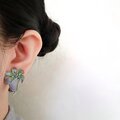 cloisonné purple blue green lily ヴィンテージイヤリング