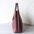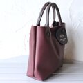 深みのあるボルドーにセミマットの艶。なめらかなスムースレザーは、しっかり厚みがありつつしなやかで、置けば自然に形を保ちます。手に吸い付く丸手ハンドル、口元はホック留めで出し入れ軽快。長財布・スマホ・ポーチが気持ちよく収まる“毎日名品サイズ”。装いを静かに格上げする、大人の一点です。