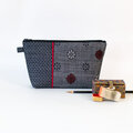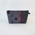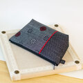 B-104大島紬切り替えポーチ/赤ライン×男大島