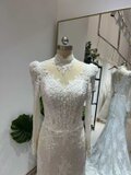 ウエディングドレス ハイネック マーメイドライン キラキラスパンコール 長袖 贅沢な総レース 憧れのドレス 結婚式