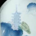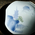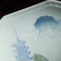 陽刻で五重塔と山水◆時代物 陽刻色絵中皿 antiques レトロ 古民家 古道具 昭和初期