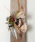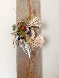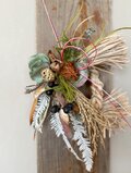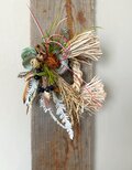 そのざっくりとした荒々しさをあえて活かし、 ナンキンハゼや唐辛子、ツノゴマ、ヒカゲノカズラの中から おめでたい意味を持つ素材を選び、作品ごとに構成しています。