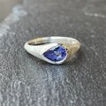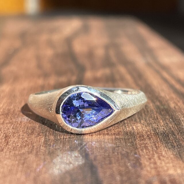 タンザナイト ペアシェイプカット 0.9ct 変形印台 シルバーSV925リング