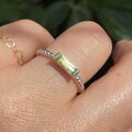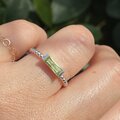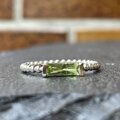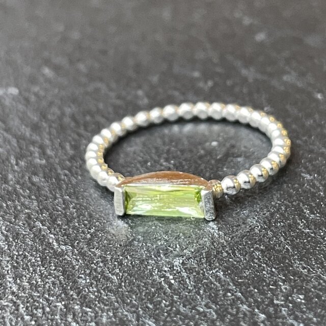 ペリドット 8×3 ロングプリンセスカット 2点留め シルバーSV925リング