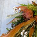 花材:クジャクヒバ、グレビレア・ゴールド、稲穂、ナンキンハゼ、ピンクッション他…