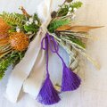 ネイティブフラワーの一種『ピンクッション』をメインにした注連縄リースです。