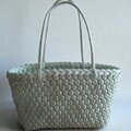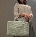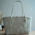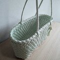 ミントグリーンのクラフトバンドで作られたハンドバッグです。