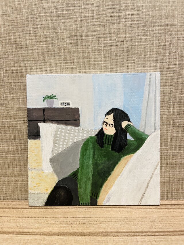 何気ない昼下がりですが、色彩のセンスが素晴らしくてとても癒される作品です。 メガネの女性の表情が素敵です。 ありがとうございました。