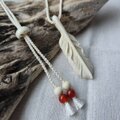 運命を感じました、これは私の元に来てくださる羽根なのだと。優しい白一色で、羽根はもちろんのこと、長さ調節のビーズも先端のちいさなふたつのビーズも本当に美しいです。経年変化も愉しんで、永く大切な御守りにさせていただきたいと思っています。この度は素敵な作品をお譲りいただき、本当にありがとうございました*