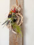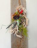 そのざっくりとした荒々しさをあえて活かし、 ナンキンハゼや唐辛子、ツノゴマ、ヒカゲノカズラの中から おめでたい意味を持つ素材を選び、作品ごとに構成しています。