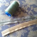 この生地は少し違う、ブルーグリーン系の糸で縫いました。