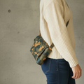 カジュアルな印象のある迷彩でありながら、革そのものの質感と設計のミニマルさにより、落ち着いた大人の装いにも自然に馴染みます。