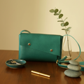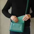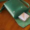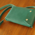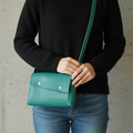 落ち着きと透明感を併せ持つイタリアンレザーの植物タンニンなめし革(ターコイズブルー)を、一枚革のまま立体的に組み上げた数量限定のポシェットです。