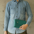 ターコイズブルーの落ち着いた色調に、植物タンニン革らしい温かみを添え、キレイ目からカジュアルまで幅広いスタイルに自然に馴染みます。