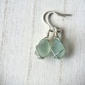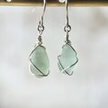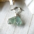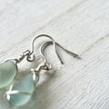 《Silver925》小さなミントグリーンシーグラスが揺れるフックピアス