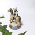 半円形の土台の上に、2026年の干支でもある午(馬)さんの背中にネコがちょこんと座っている作品です。
