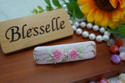淡桜ローズ・可憐に咲く春色バレッタ|手刺繍・シルク生地・一点物