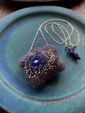 ウールとミラー刺繍のペンダント・チャコール