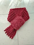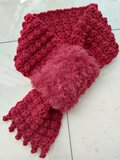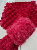 ファーを編みつけた手編みのマフラーになります!
