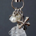 雪や氷をイメージした小さな淡水パールと水晶と、雪の結晶を模ったメタルチャームを添えました。