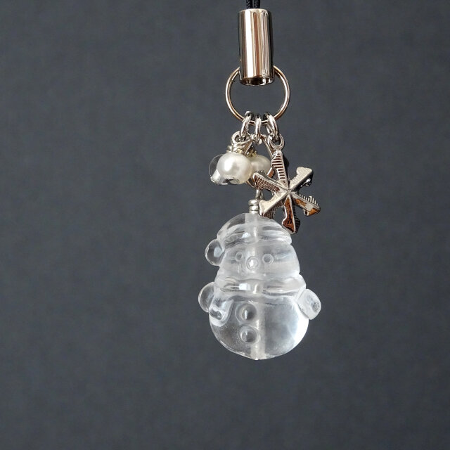 かわいい雪だるまの形をした水晶のストラップです。