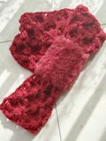 【お客様の声から生まれた】マフラー ファー ショート ループ バタフライ 花 柄 模様 赤 レッド ボルドー 手編み 編み物