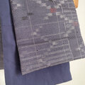 【1点もの】着物 襟巻き ネックウォーマー -ウール交織の着物 濃い紫にグレー & 木綿 紺(ヴィンテージ) NW551
