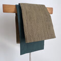 【1点もの】着物 襟巻き ネックウォーマー -絹 着物地 紬 薄茶 & 木綿生地 深緑(ヴィンテージ) NW711