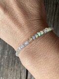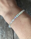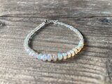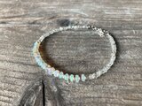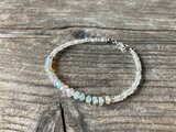 そんなプレシャスオパールをアクアマリンの間にふんだんに散りばめた華奢なブレスレットです。遊色が素晴らしく綺麗なオパールがアクアマリンの海をひとすくいしたようなアクアブルーに溶けこんでいるようで繊細で透明感ありとても素敵です