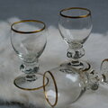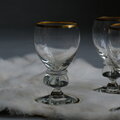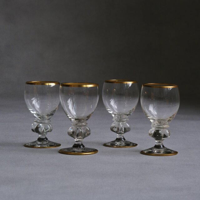 Holmegaard(ホルムガード)社を代表するシリーズの一つ「Gisselfeld(ギッセルフェルド)」の小さなワイングラス。デンマークの巨匠Jacob E. Bangが1933年にデザインした、同社のロングセラーシリーズ、1970年まで生産されていた希少なヴィンテージ品です。繊細なゴールドの縁取りと、重厚感のあるステムが織りなすエレガントなシルエットが魅力。小ぶりなサイズ感は、見た目に可愛いだけでなく、食前酒やリキュール、日本酒など、家族で特別な一杯を楽しむシーンに最適の1点です。