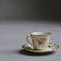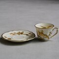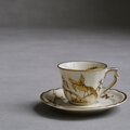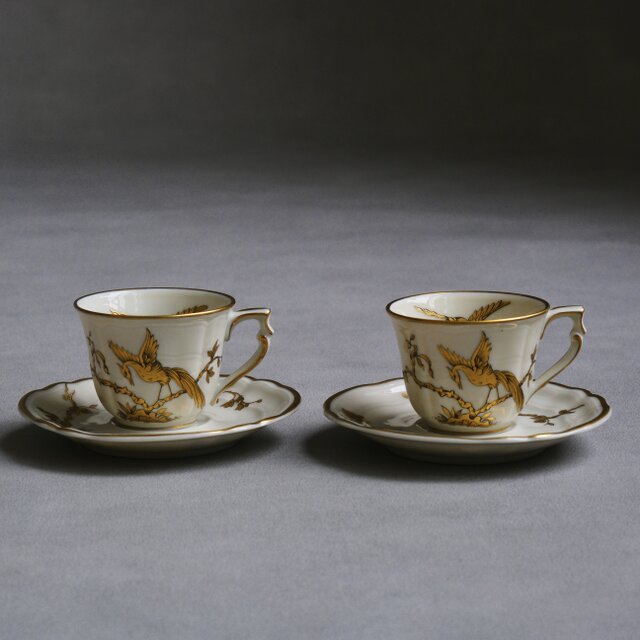 1863年創業のリモージュ最大の名窯と言われフランスを代表する磁器ブランド、BERNARDAUD(ベルナルド)が1957年4月にイギリスのエリザベス女王のフランス訪問時のレセプションの為に製作し、限定販売されたモデル。上品なアイボリーカラーの磁器に、金彩で鳳凰や草花がとても繊細に美しく描かれています。デミタスカップサイズの小さく華奢で上品な佇まいが更に美しさを引き立てます。とても希少な未使用の優れたコンディションも魅力。コレクターには堪らないペアセットです。