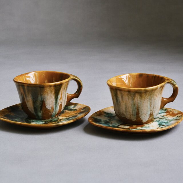 【Beauceware】カナダ製 / ヴィンテージ / コーヒーカップ 2客セット/ キャメル&グリーン